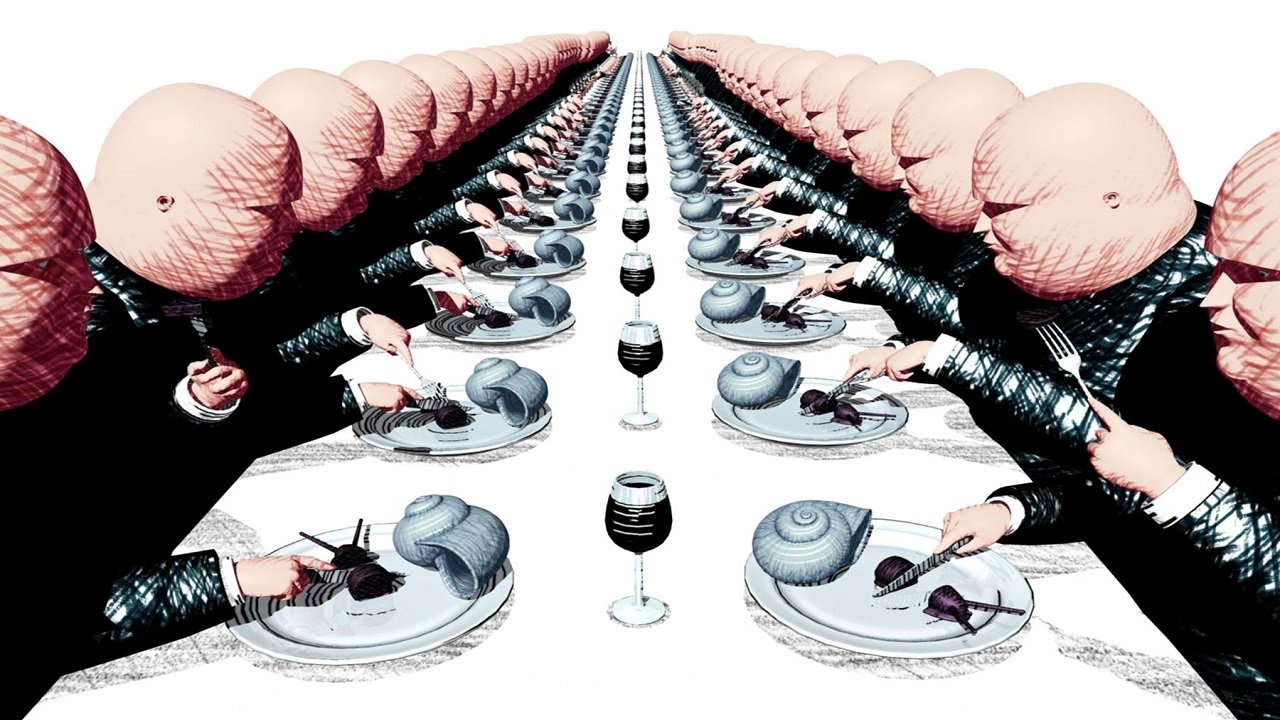 Things have an interesting turn in a society consisting of snail-eating identical chubby men.
